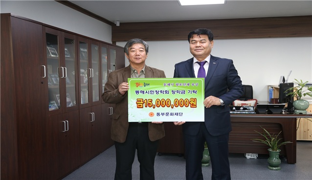 재단법인 동부문화재단(이사장 강경식)에서는 지역발전을 선도할 향토인재 양성에 써달라며, 지난 11월 16일(월) 동해시민장학회를 방문한 자리에서 장학금 1,500만원을 기탁하였다.