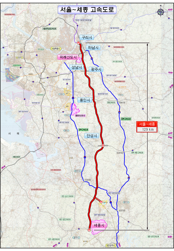 | 서울~세종 고속도로 129km(6차로) 위치도 |
