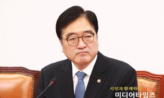 | 우원식 더불어민주당 원내대표가 10일 오전 국회에서 열린 원내대책회의에서 발언하고 있다. |