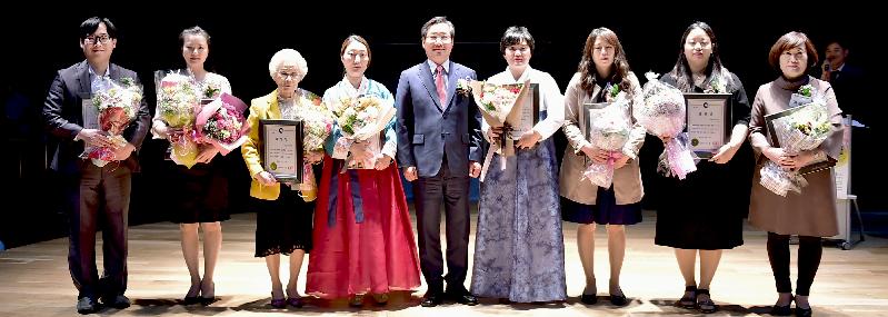 | 유정복 인천광역시장이 11일 송도트라이볼에서 열린 "제13회 입양의 날 기념행사"에서 유관기관으로는 인천시가 최초로 관계를 맺고 시 발전 유공자들에게 표창 후 기념촬영을 하고 있다. |