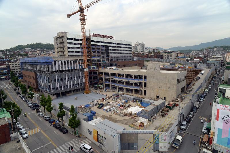 2013년 11월 착공 이후 시공사의 연이은 기업회생절차(법정관리)로 난항을 겪다가 지난해 말 공사가 재개돼 외장·수장·배관·배선 공사 등 전 공정이 활기를 띠고 있다.