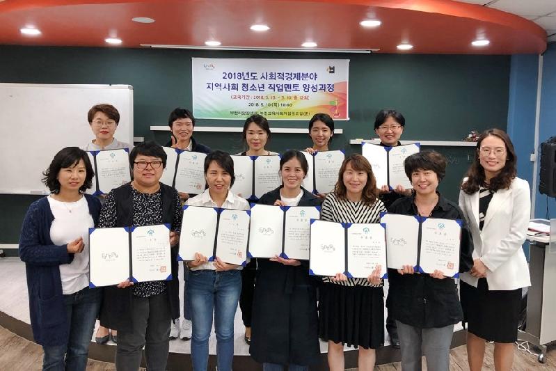 | 지난 5월 10일 공정무역 전문강사 양성과정 수료생들의 기념촬영 모습.<사진=부천시청 제공> |