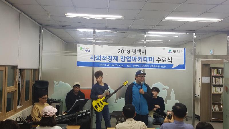 수료식은 떡과 다과를 함께하며 3기 수료생인 청년버스킹 그룹 ‘세움지기’의 축하공연으로 마무리 됐으며 1기와 2기 선배수료생들이 함께 참석하여 큰 의미를 더하고 사회적경제 활성화에 기여하는 계기가 됐다.