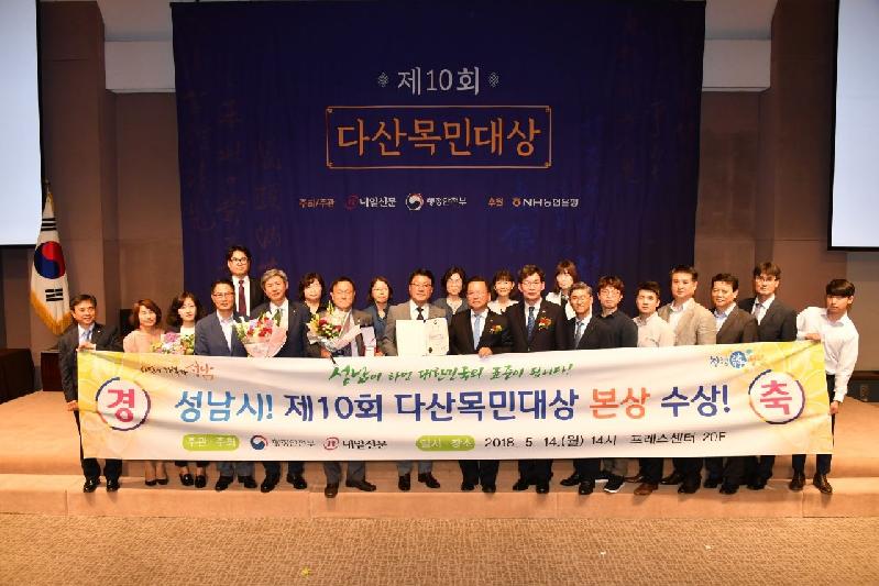 성남시는14일 서울 중구 프레스센터 국제회의실에서 열린 ‘제10회 다산목민대상 시상식’에서 행정안전부 장관상인 본상을 수상했다.
