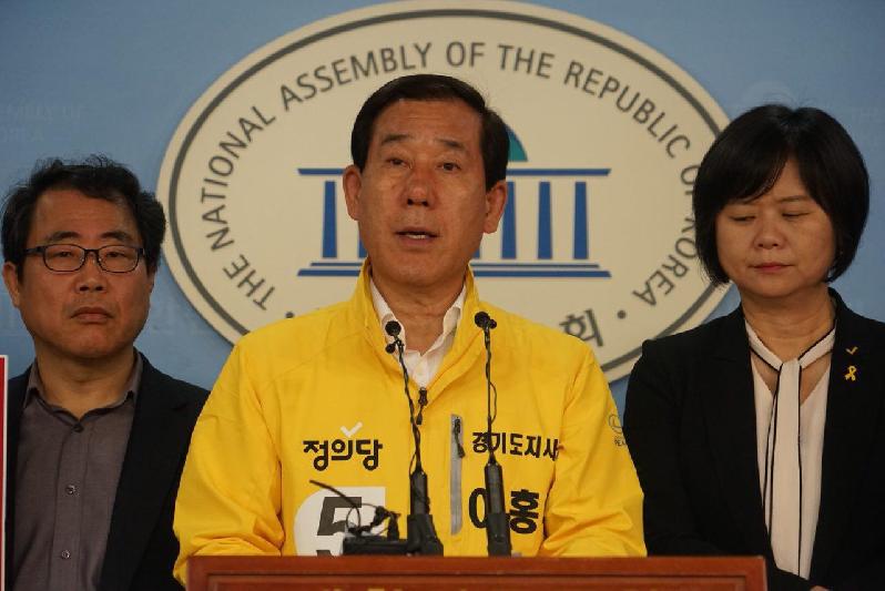 정의당 이홍우 경기도지사 후보가 14일 오전 11시 국회 정론관에서 주민들과 함께 기자회견을 열고 광명-서울간 고속도로의 전면 재검토를 주장했다.