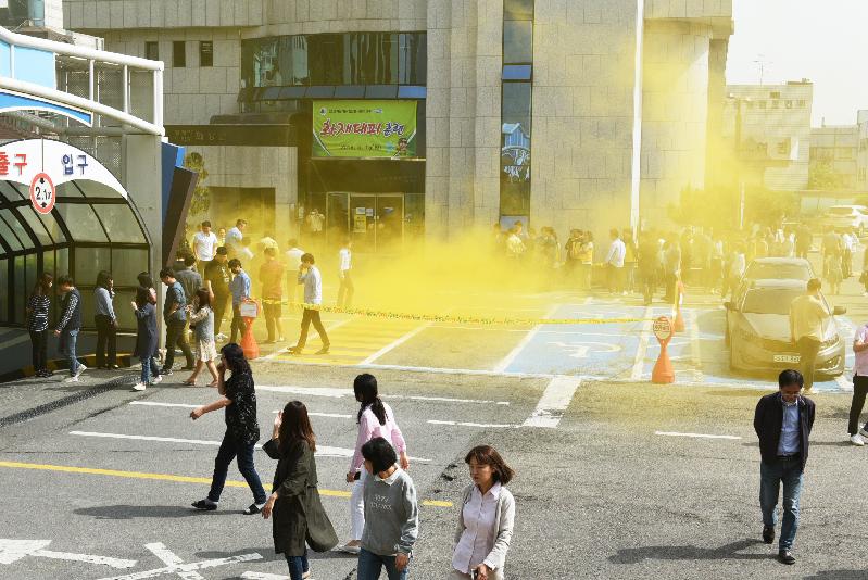 건물 밖 대피집결지에서는 훈련강평 및 소화기작동요령을 시연해 화재대피 뿐만 아니라 초기 화재진압 요령을 병행해 화재대피 훈련 성과를 극대화 했다.