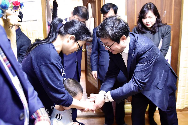 | 7자녀 가정을 방문해 인사를 하는 염태영 수원시장. |