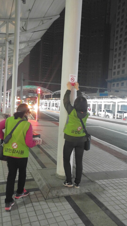 - 금연지도원 10개조 편성하여 공중이용시설 대상 금연구역 표지판 및 스티커 부착 여부, 시설 내 흡연실 설치기준 준수여부, 금연구역 내 흡연행위 등 점검