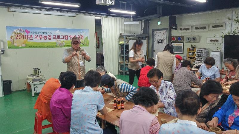 화성시 치유농업연구회가 15일 예랑도예원(봉담읍 소재)에서 봉담주민건강지원센터의 주간보호를 이용 중인 65세 이상 어르신 9명을 모시고 치유농업 프로그램을 운영했다.