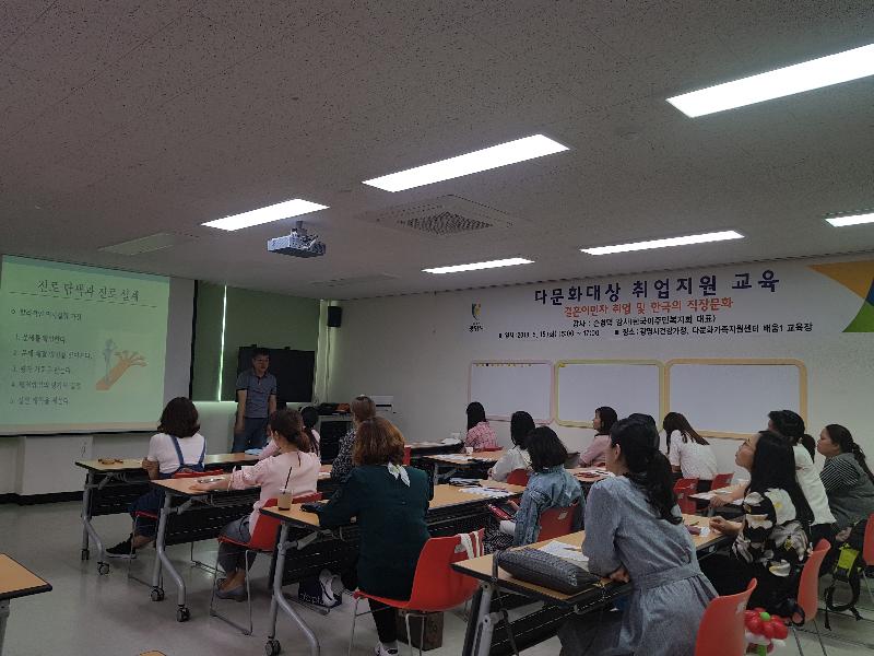 - ‘결혼이민자 취업 및 한국의 직장문화’ 주제로 결혼이민자의 취업실태, 취업 고충, 한국 정 문화 등 사례중심 강의... 교육 참석 이민자들 큰 호응