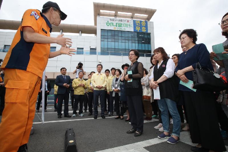 이강덕 포항시장을 비롯해 마트에 장을 보러 온 시민들과 포항농협 직원 등 100여명이 훈련에 참여했으며, 다중이용시설에서 실제 지진이 일어나면 어떻게 행동해야 하는지를 배울 수 있는 좋은 기회가 됐다.