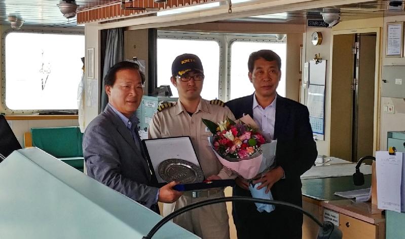 지난 16일 포항 영일만항~필리핀 항로를 운항 중인 1,860TEU급 KMTC 포트켈랑호의 포항 영일만항 첫 입항을 환영하며, 포항영일신항만㈜ 장종두 상임고문과 포항시 최규진 항만물류과장이 고려해운㈜ 신일홍 선장에게 첫 기항 기념패와 축하 꽃다발을 전달하고 선장을 비롯한 직원들을 격려했다.