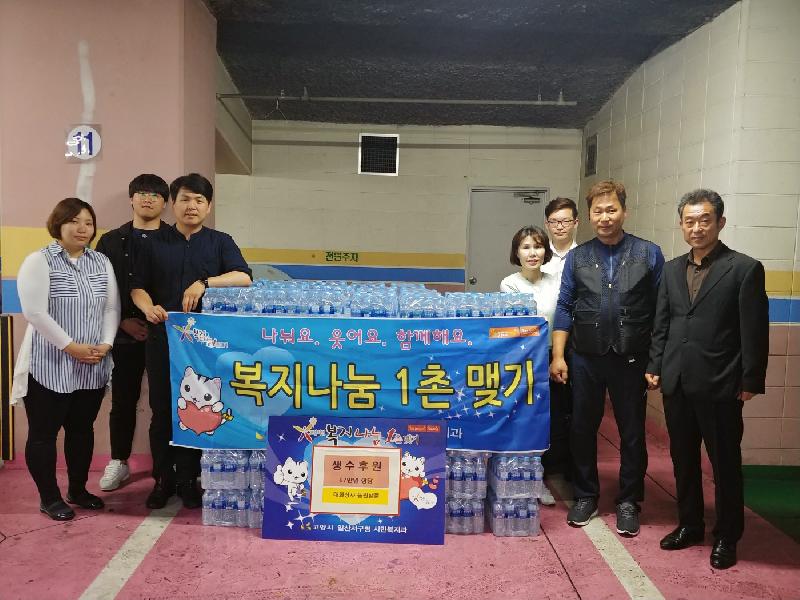 기업 관계자는 “때이른 더위에 힘든 이웃들이 많을 것 같아 생수 기부를 생각하게 됐으며 보다 가까이에 있는 이웃들을 돕는 것이 더 뜻깊은 활동이라 생각한다”고 말하며 “앞으로도 복지나눔 1촌맺기 사업에 지속적으로 참여하겠다”고 뜻을 밝혔다.