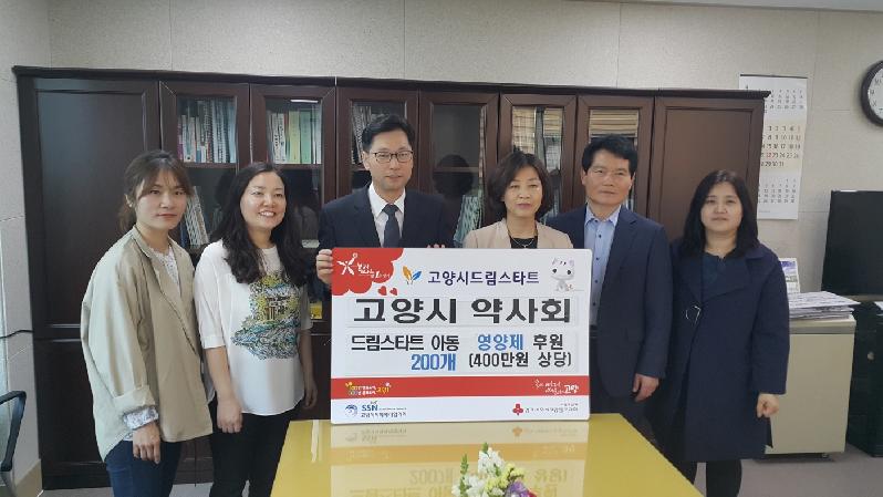 고양시약사회는 지난 2013년부터 매년 영양불균형으로 인한 발육 부진 예방을 위해 도움이 필요한 드림스타트 아동에게 지속적으로 영양제를 기탁하고 있다.