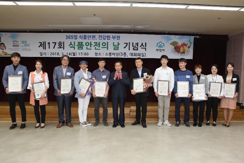 이날 식품안전에 공이 많은 시민과 공무원에 대한 표창이 있었다. 애슐리중동홈플러스점(김완식), 야들리애치킨상동점(박정근), 후원부천뉴코아점(김현수), 본도시락부천역곡점(박수미), (주)캘리스코사보텐현대중동점(구지은), 산해연갈비알찜(이종학), 콩불부천상동역점(한상호), 송도숯불장어구이전문점(김종택), 농협목우촌웰빙마을청춘옥점(윤숙희), 잔치마을(도연훈), 본도시락(권미정), 종이비행기날고(이재욱), 지성떡방앗간(정종수), 딩동댕어린이집(최순희), 새소망어린이집(명순심), 소비자식품위생감시원(공현미, 김혜숙), 어린이식품안전체험관(송다영), 소사외식업지부(김대윤) 등이 시장표창을 수상했다.