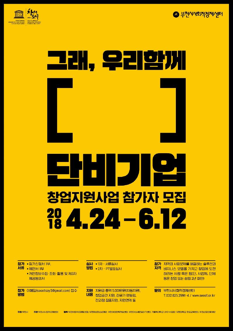 참가 지원은 부천시사회적경제센터 홈페이지(www.seeot.or.kr)에 게시된 공모신청서와 창업제안서 등 제출서류를 작성해 이메일(seeotsay2@gmail.com)로 제출하면 된다.