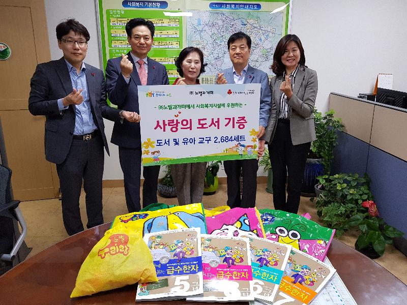 ㈜노벨과개미는 「파브르 곤충기」, 「그리스로마 신화」, 「급수 한자」 등 자사의 아동 도서 894권, 만3~5세를 위한 놀이교구 1790세트를 경기사회복지공동모금회를 통해 수원시에 지정기탁했다.