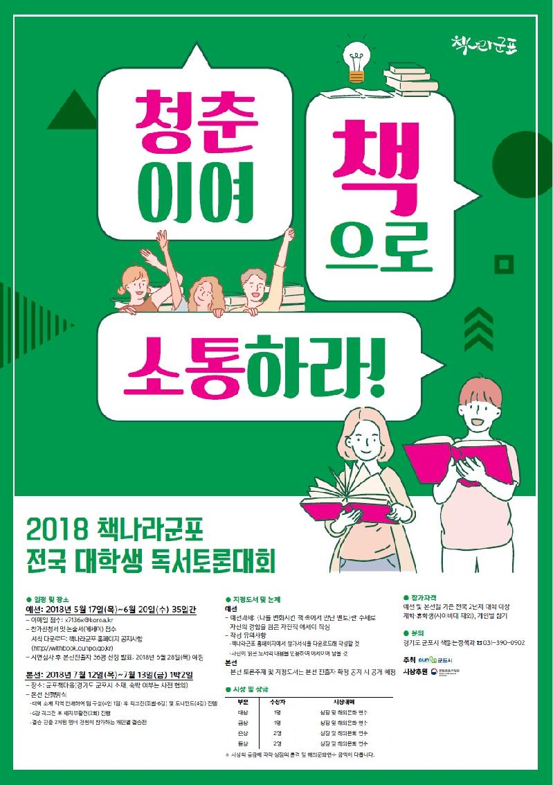 - 군포시, ‘제6회 책나라군포 전국 대학생 독서토론대회’ 개최… 입상자 해외문화연수 지원