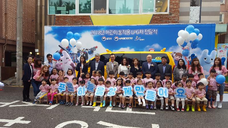 이날 행사는 LPG 통학차량 전달식 외에도 LPG 통학차량 제막식, 안전 날개 부착식 순으로 진행됐으며, 행사에 참여한 어린이들에게 미세먼지 차단 마스크와 우수환경도서 등의 기념품도 전달됐다.