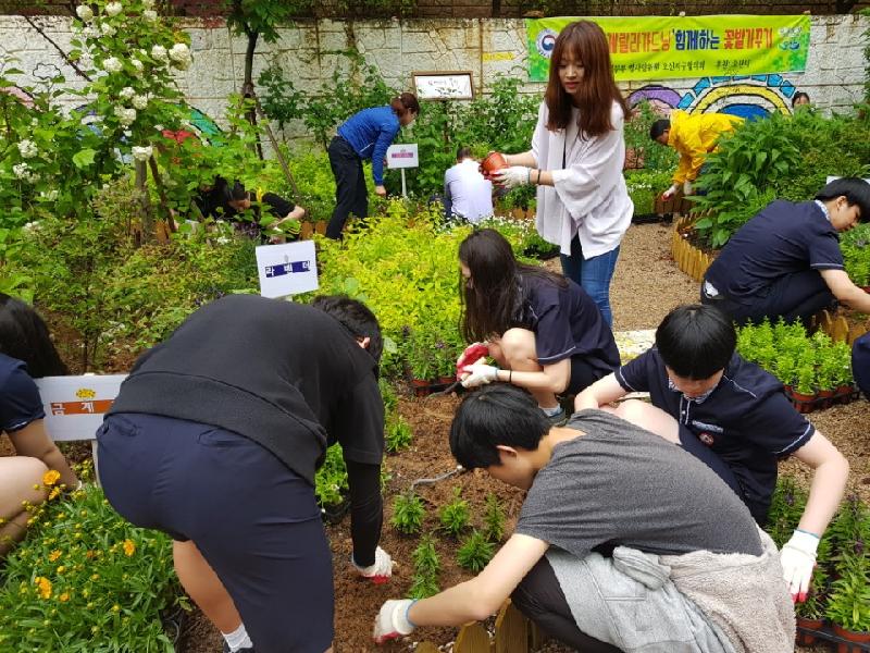 이번 행사는 지난해 조성한 꽃밭에서 법사랑위원회 회원, 성호고등학교 학생들이 참여하여 제초작업 등의 화단 관리 작업을 비롯해 안젤로니아 등 다양한 꽃 식재 및 벽화보수 작업을 함께 진행해 기존 꽃밭을 더욱 풍성하고 아름답게 가꾸는 의미 있는 시간을 가졌다.