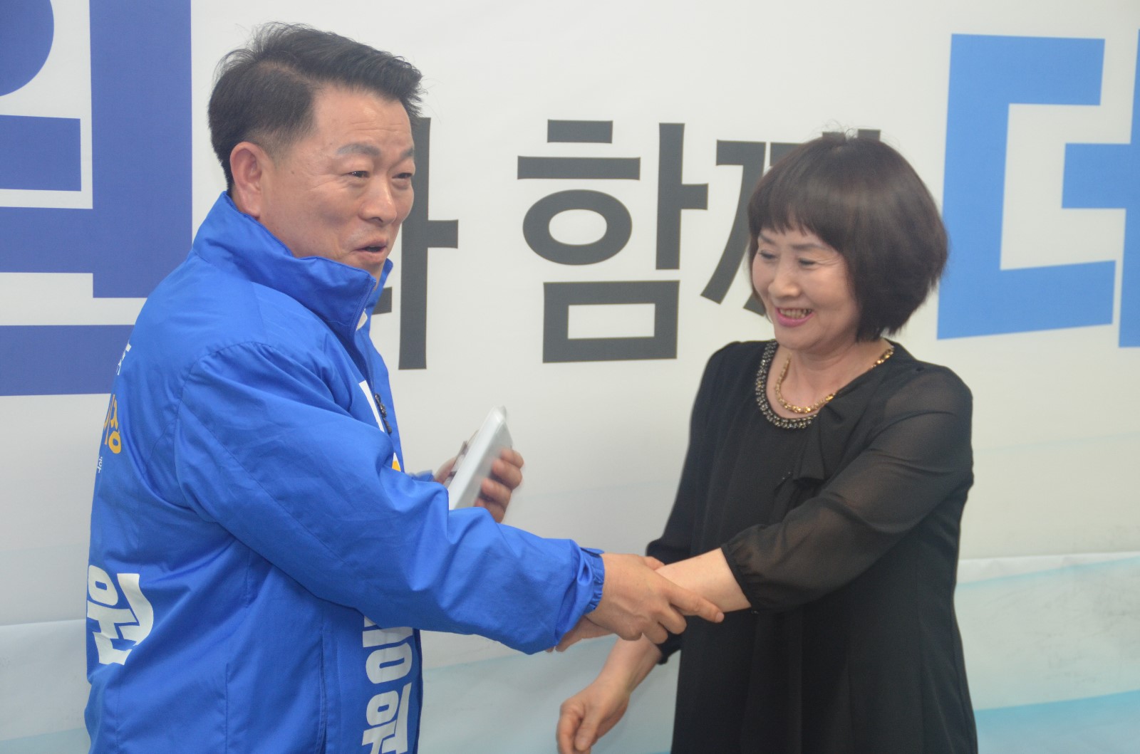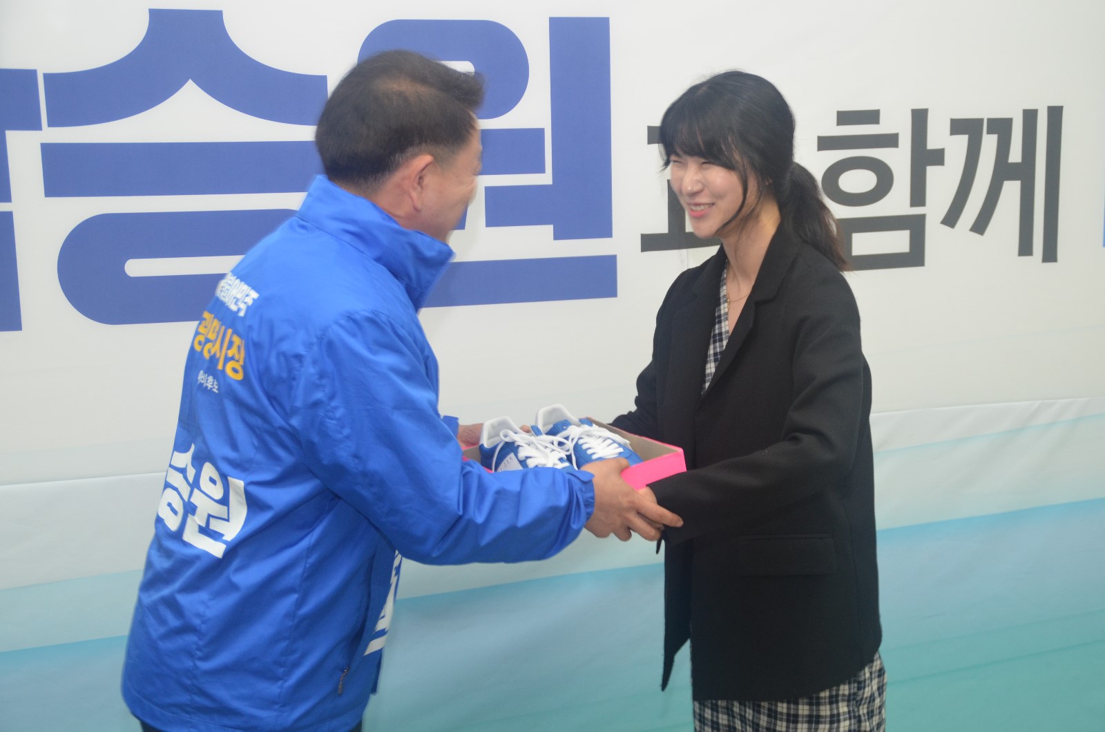 행사 막바지에는 박승원 후보가 열심히 뛰어 꼭 선거에서 승리하라는 의미로 상의, 신발, 찹쌀떡의 깜짝 선물 증정식이 있었다.