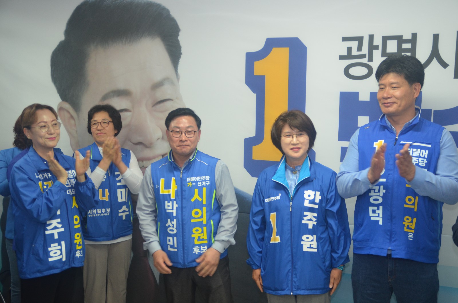 이날 행사에는 박광온 더불어민주당 경기도당위원장, 이석현 전 국회부의장, 백재현. 김두관. 윤관석. 권칠승. 전해철 국회의원을 비롯해 김민석 민주연구원장, 양기대 전 광명시장, 강득구 경기도 전 연정부지사, 각 선거구 광명시 도. 시의원 후보 등이 대거 참석했다.