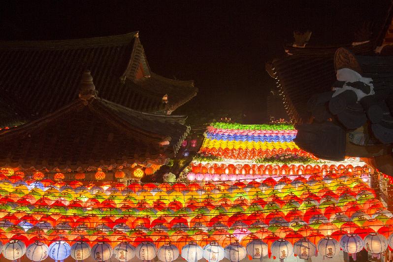 불기 2562년(2018년) 부처님 오신날을 맞아 의왕시 청계사에 아름다운 연등이 수놓아져 있다.