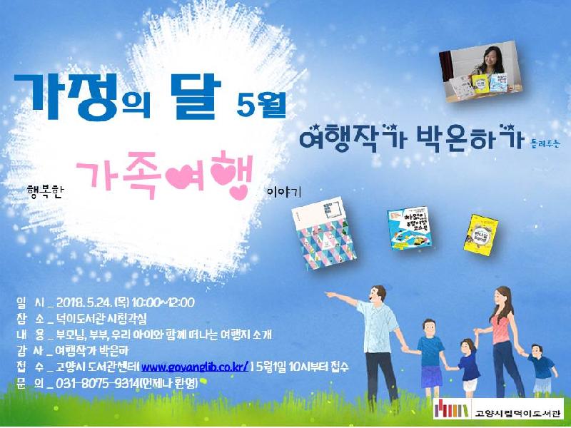 고양시 덕이도서관은 가정의 달 5월을 맞아 오는 24(목) 오전 10시 도서관 교양교실에서 여행 특강을 진행한다.