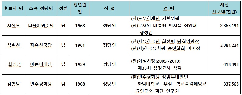 제7회 전국동시지방선거 화성시장 후보자 현황