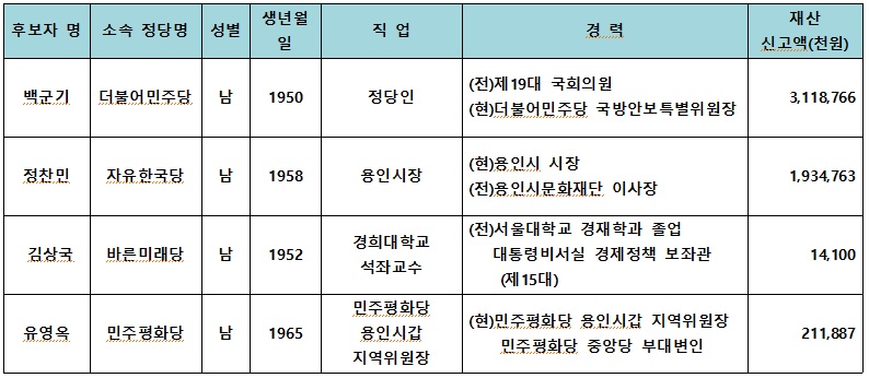 제7회 전국동시지방선거 용인시장 후보자 현황