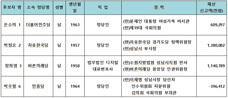 제7회 전국동시지방선거 성남시장 후보자 현황