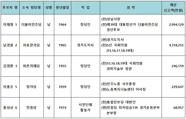 제7회 전국동시지방선거 경기도지사 후보자 현황