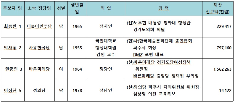 제7회 전국동시지방선거 파주시장 후보자 현황
