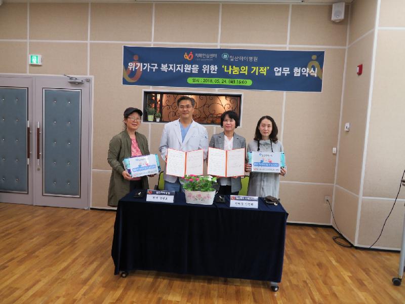 고양시 일산동구보건소는 지난 24일(목) 일산 하이병원과 저소득층 치매 극복 위한 업무 협약을 체결했다.