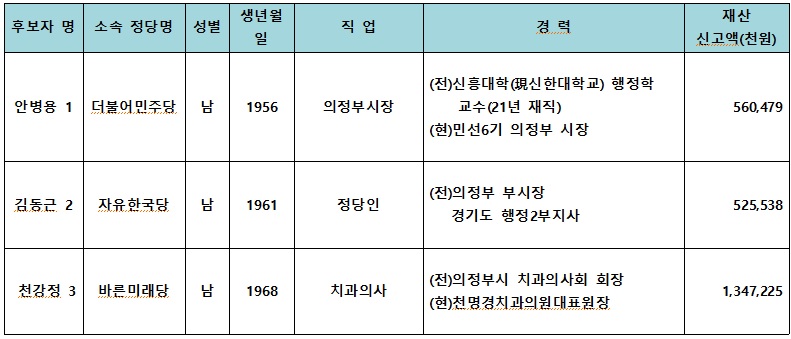 제7회 전국동시지방선거 의정부시장 후보자 현황
