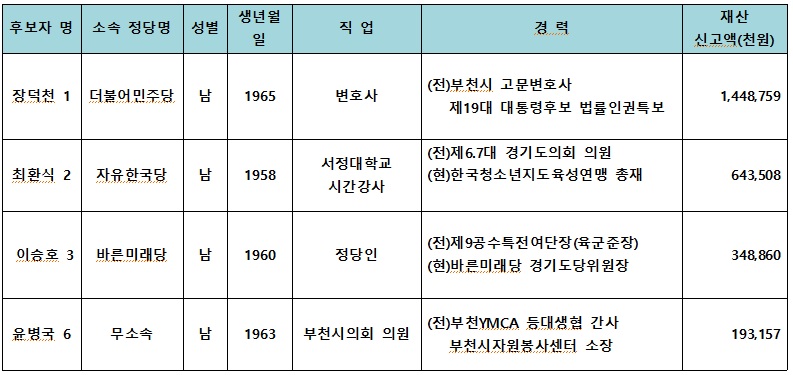 제7회 전국동시지방선거 부천시장 후보자 현황