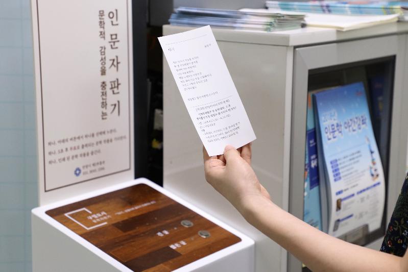 시 관계자는“인문자판기를 통해 바쁜 시간에 쫓겨 책을 가까이 하지 못하는 시민들에게 문학 작품을 읽는 즐거움을 제공하고 나아가 시민들이 일상 생활 속에서 문학 작품을 접할 수 있는 환경을 만들어 나가겠다”고 말했다.