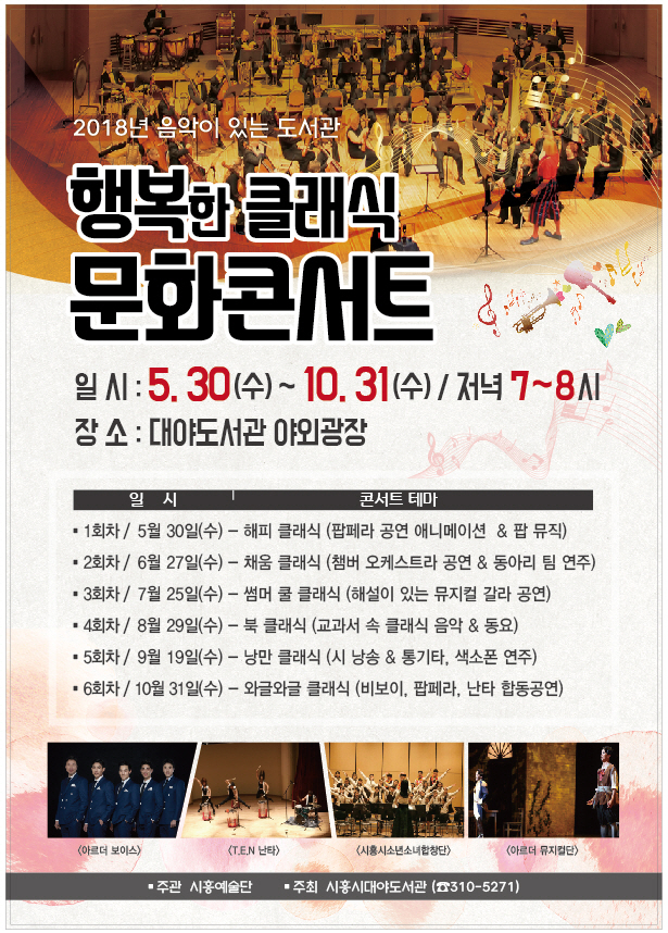 시흥시 대야도서관은 오는 5월 30일(수) 7시에 ‘해피 클래식’을 테마로 를 시작한다.