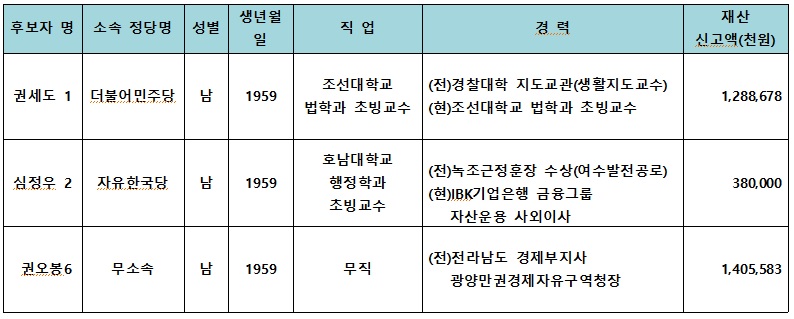 제7회 전국동시지방선거 순천시장 후보자 현황