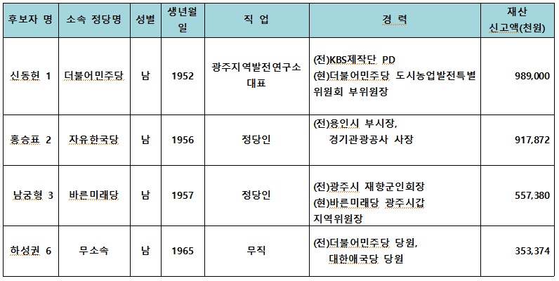 제7회 전국동시지방선거 광주시장 후보자 현황