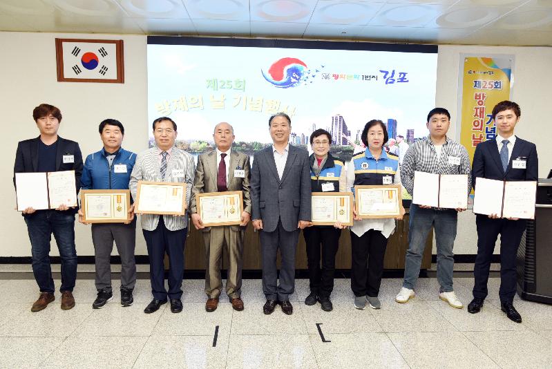 방재의 날 행사에서는 1년간 김포시의 방재 업무를 성실히 수행한 8명의 민간인 및 공무원에게 시장 표창을 전수해 자연재난 사전예방 활동의 중요성과 재난현장에서 묵묵히 본연의 임무에 최선을 다하는 모습을 재조명했다.