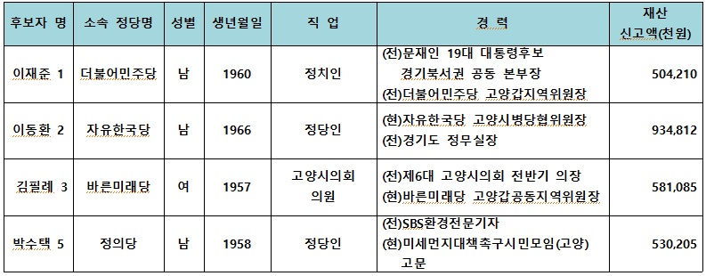 제7회 전국동시지방선거 고양시장 후보자 현황