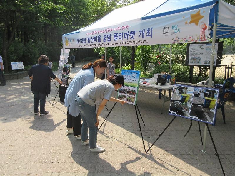 2017년 5월부터 개최된 ‘별산마을 꿈담 플리마켓’은 자라나는 아이들에게 올바른 경제관념을 심어주고, 어른에서 아이에 이르기까지 생생한 자원순환 체험의 장을 마련해주고자 실시되었으며, 지방선거이후 하반기부터는 플리마켓의 활성화를 위해 EM비누만들기, 페이스페인팅, 풍선아트 등 다양한 체험행사와 음악, 댄스, 악기연주 등 재능기부 공연을 유치할 계획이다.