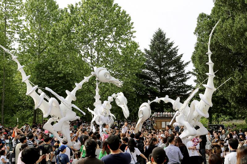 힙합 무용수들이 높은 철망 앞에서 무언가를 만들고 해체하며 ‘긴장과 해방’을 표현한 ‘해체’, 익룡이 연상되는 거대한 생명체 모형이 화려한 빛을 내뿜으며 행진하는 이동형 거리극 ‘버드맨’도 관객의 시선을 끌었다.
