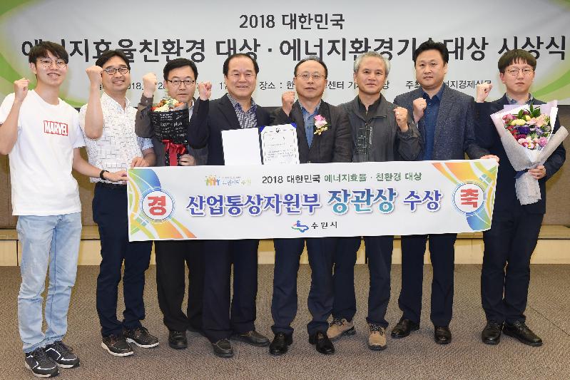 수원시가 ‘2018 대한민국 제4회 에너지효율·친환경 대상’에서 에너지 효율 부문 산업통상부 장관상을 받았다. 시상식은 28일 한국프레스센터에서 열렸다.