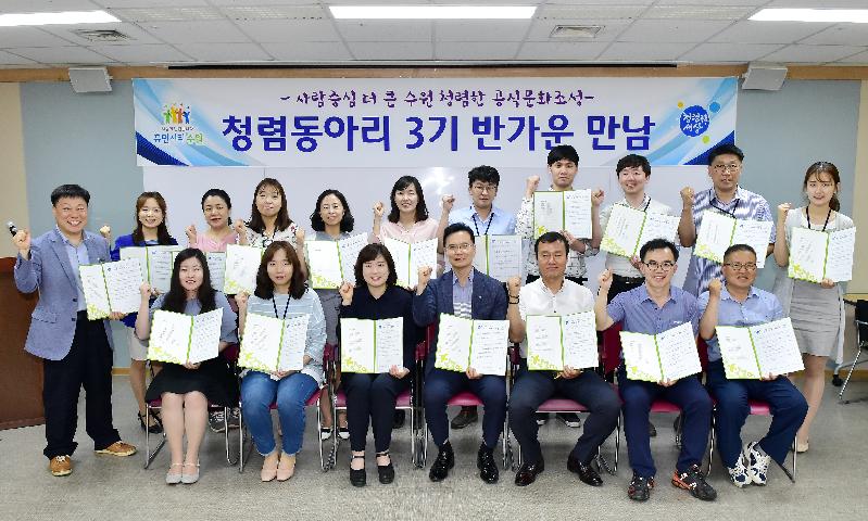 회원들은 ▲법과 원칙을 준수하고 부패를 예방해 신뢰받는 공직사회를 구현하고 ▲권한 남용·부당한 지시나 압력·이권 개입·알선·청탁을 하지 않고 ▲청렴성에 의심을 받을 만한 일체의 행동을 하지 않고 ▲업무수행과정에서 부당한 이익을 추구하지 않고 ▲청렴동아리 회원으로서 자긍심을 갖고 청렴한 공직 풍토 조성에 앞장서겠다고 약속했다.