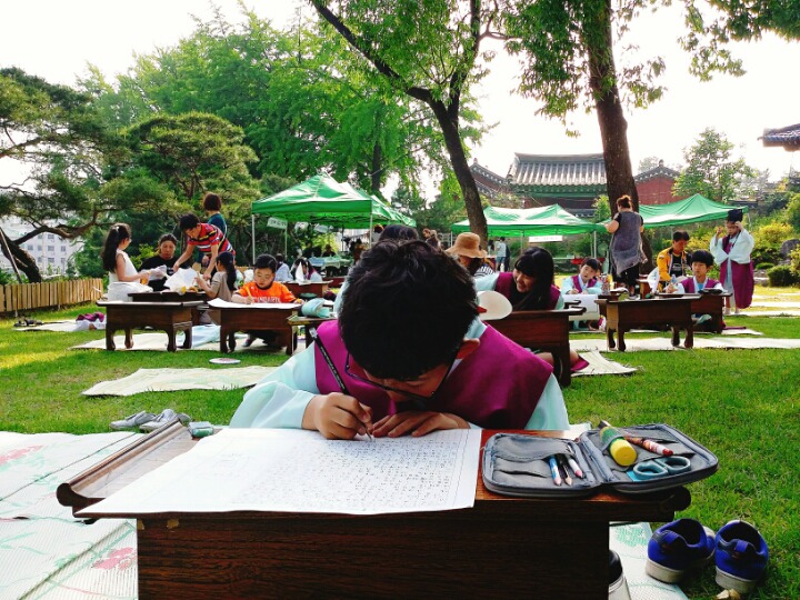 작년에 이어 2회째를 맞이하는 행단에 열린 꿈 궐동학교 백일장 ‘행단별시’는 등수를 매겨 수상자를 뽑거나 수상을 우선하는 행사가 아니라 닫혀있는 문화재의 문을 활짝 열어 문화재에 대한 이해의 폭을 넓히고, 단순관람에서 벗어나 오감을 자극하는 체험 중심이다. 원고지를 가득 메운 결과물을 제출한 후 심사위원들의 심사가 진행되는 동안 다양한 문화공연에 참가하여 체험도 하고 공연도 보면서 오늘 행사를 즐겼는데 우쿨렐레 연주, 베이스 김준호 ․ 바리톤 이진원의 성악, 하모니 싱어즈에코의 중창단, 초등친구들의 방송댄스, 풀릇과 첼로의 앙상블 연주, 이크택견의 화려한 동작을 감상하고 참가자들이 동작을 직접 배워보는 시간이었다.