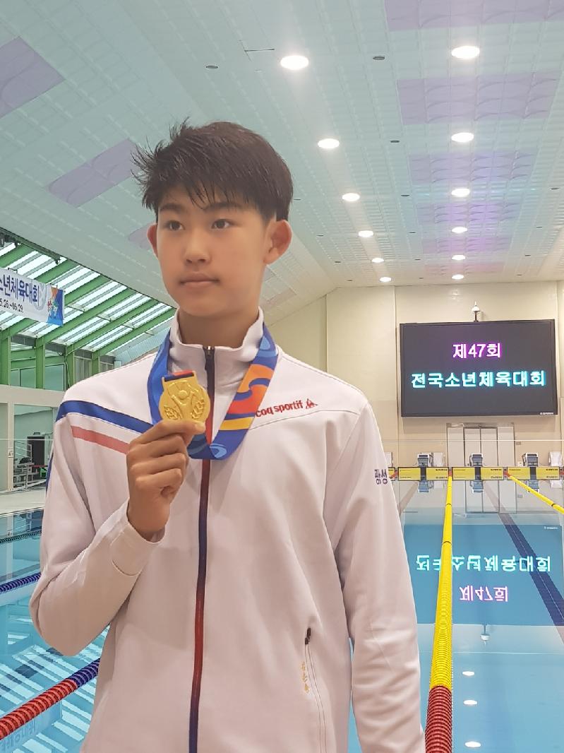 김은총 학생은 지난 26일 주종목인 개인 평영 100m 대회에서 대회 신기록을 깨며 가볍게 첫 금메달 사냥을 시작하였다. 다음날인 27일(일) 오전에는 평영 50m 대회에서 기량을 마음껏 뽐내며 두 번째 금메달을 획득하였다.