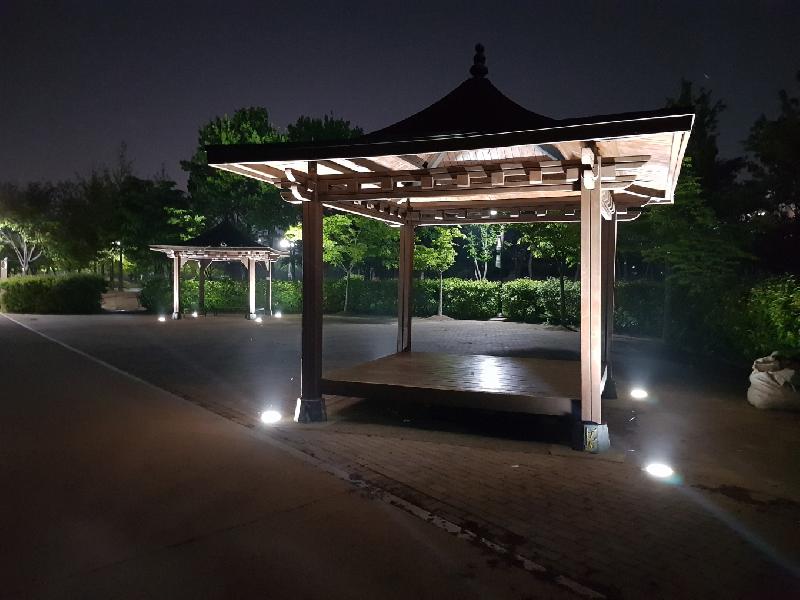 이번에 설치된 조명은 중앙광장 타워조명 2개, 산책로 LED 조명 등 8종이다. 나무 주변과 영화정, 정자에는 지중등(地中燈)을 설치해 운치 있는 야간 경관조명을 연출했다.