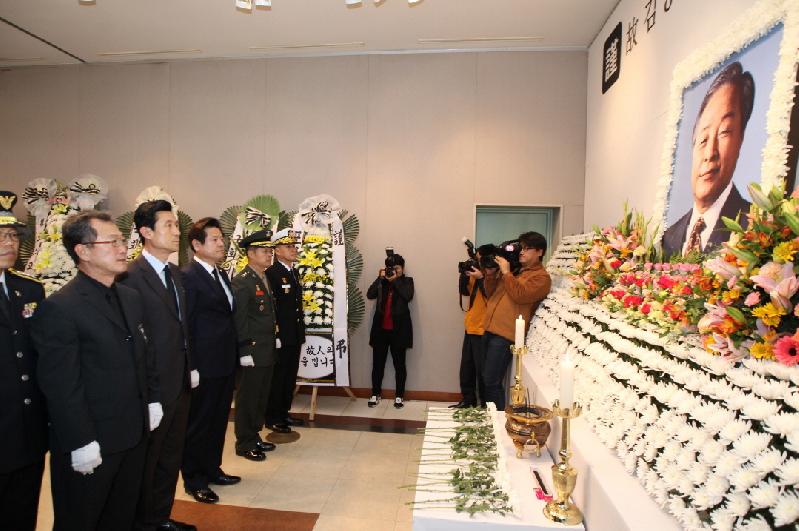 이강덕 포항시장은 23일, 김영삼 전 대통령의 서거와 관련해 깊은 애도의 뜻을 표하고, 포항문화예술회관에 설치된 분향소를 찾아 조문한데 이어 조문객들의 발길이 이어지고 있다. 전날 김 전 대통령의 서거 소식을 접한 이 시장은 “김영삼 전 대통령은 우리나라의 민주화를 열고, 지방자치를 부활시킨 장본인으로 고인이 보여준 개혁과 평화의 정신은 국민의 마음속에서 오랫동안 빛날 것”이라며 “다시 한 번 김영삼 전 대통령의 서거를 53만 포항시민과 함께 애도한다”고 말했다. 이 시장은 조문객을 맞는 직원들에게 “고인과 조문객에게 예를 갖추고 정성을 다해달라”고 당부했다.
